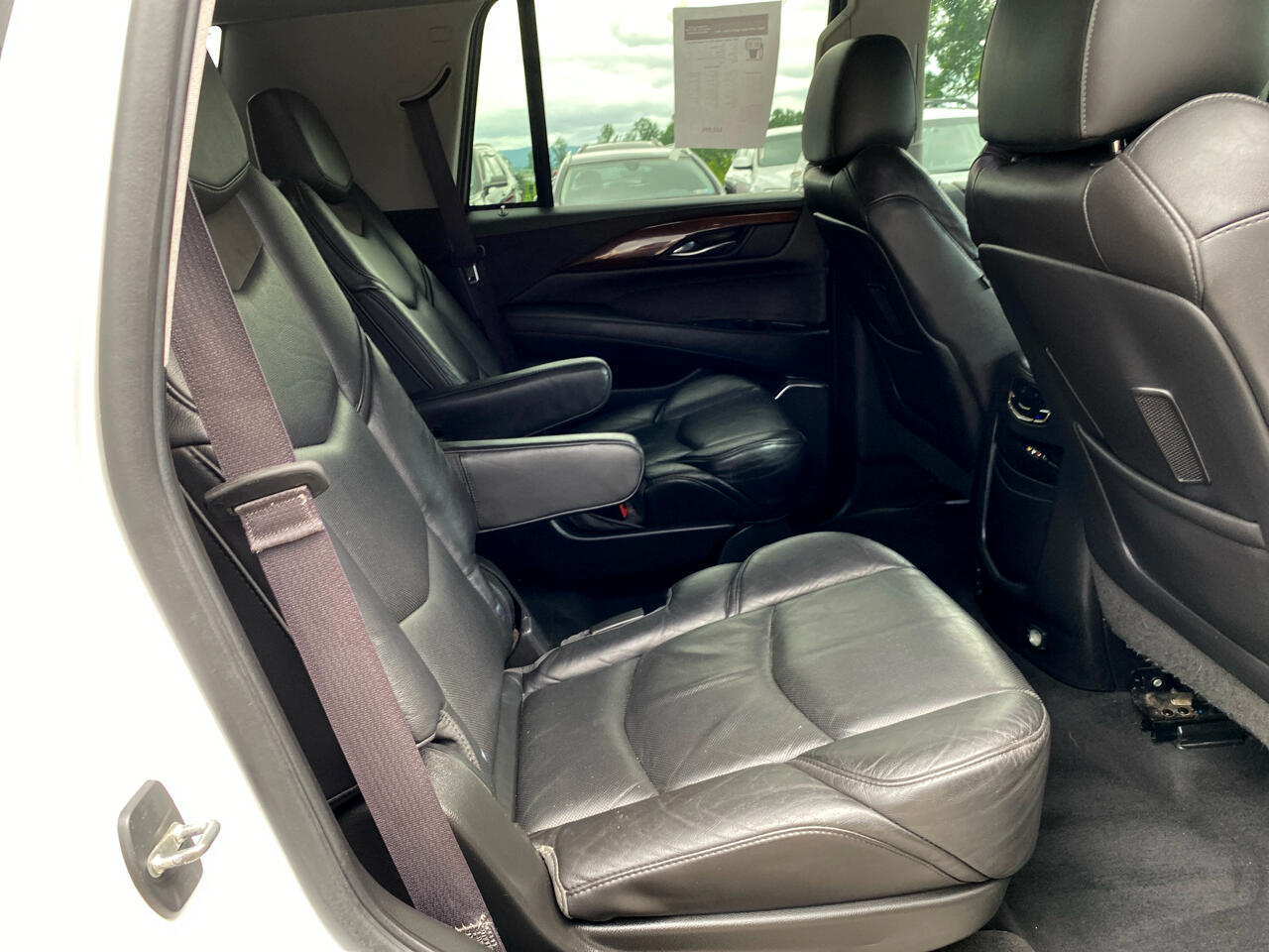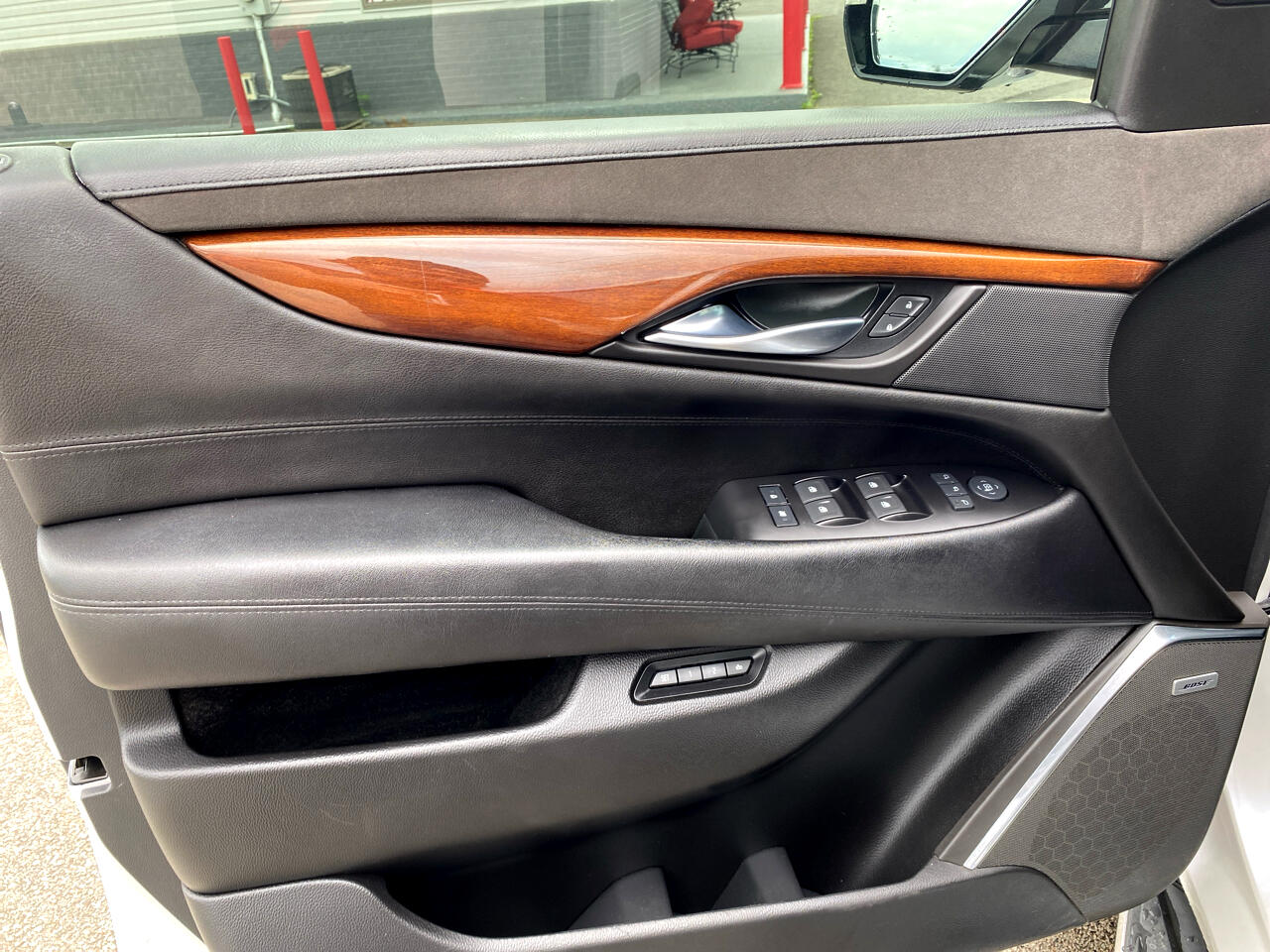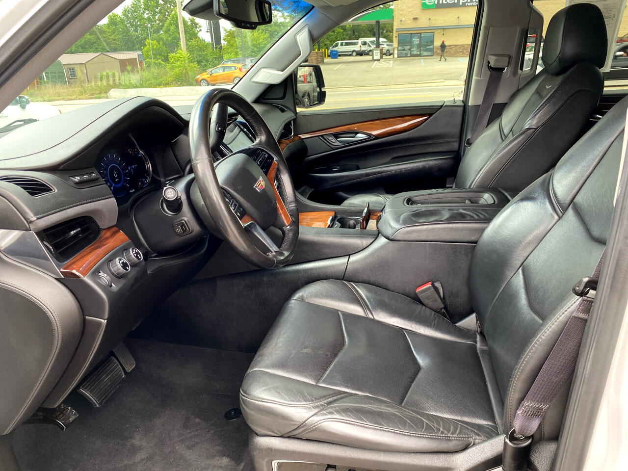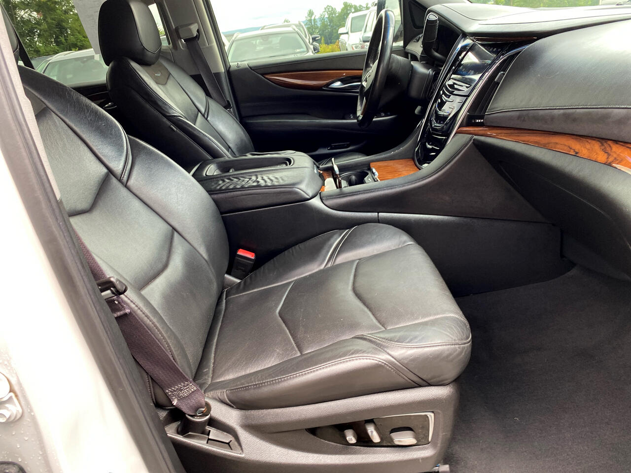 Jump into luxury and style with this Arctic Metallic 2016 Cadillac Escalade! Feel the power of the 6.2L V8 engine, capable of delivering 420 HP of pure excitement. Equipped with all the bells and whistles, this Escalade offers Magnetic Ride Control, automatic load leveling, and a high-capacity air cleaner for peak performance. The exterior features chrome accents, LED lighting, and a roof-mounted luggage rack for added convenience. Step inside to find a Bose Centerpoint Surround Sound system, heated steering wheel, and a 12" color reconfigurable gauge cluster with a Head-Up Display. Safety is a top priority with features like Surround Vision, Front and Rear Park Assist, Lane Change Alert, and Side Blind Zone Alert. With a carfax report available, you can drive off the lot with peace of mind. Don't miss out on the opportunity to own this magnificent Escalade that seamlessly combines power, luxury, and safety in one sleek package.