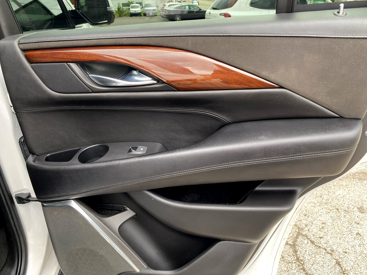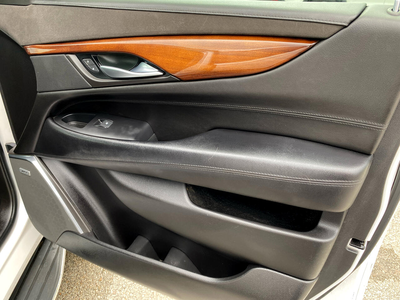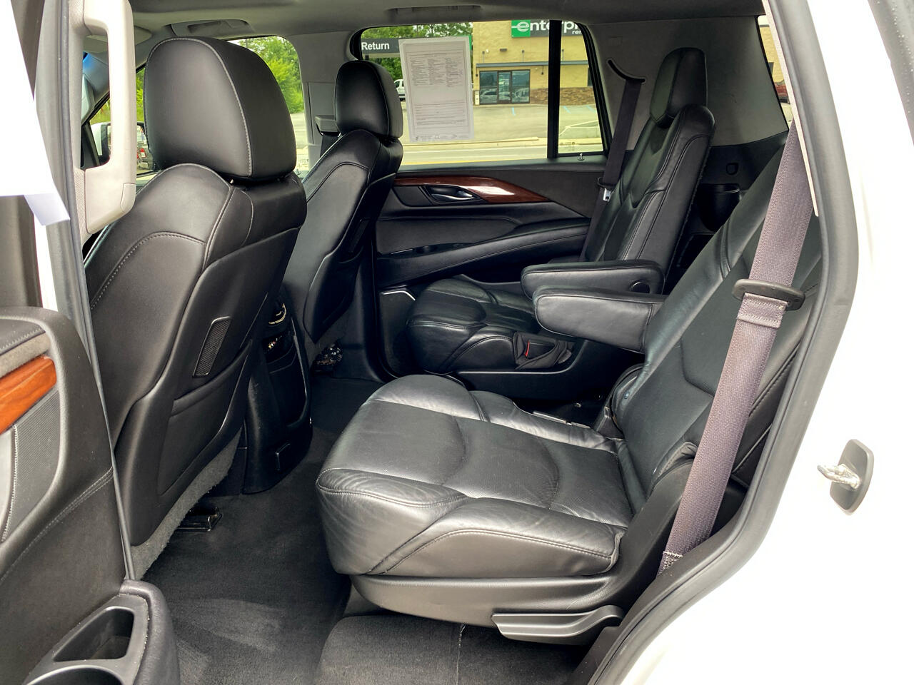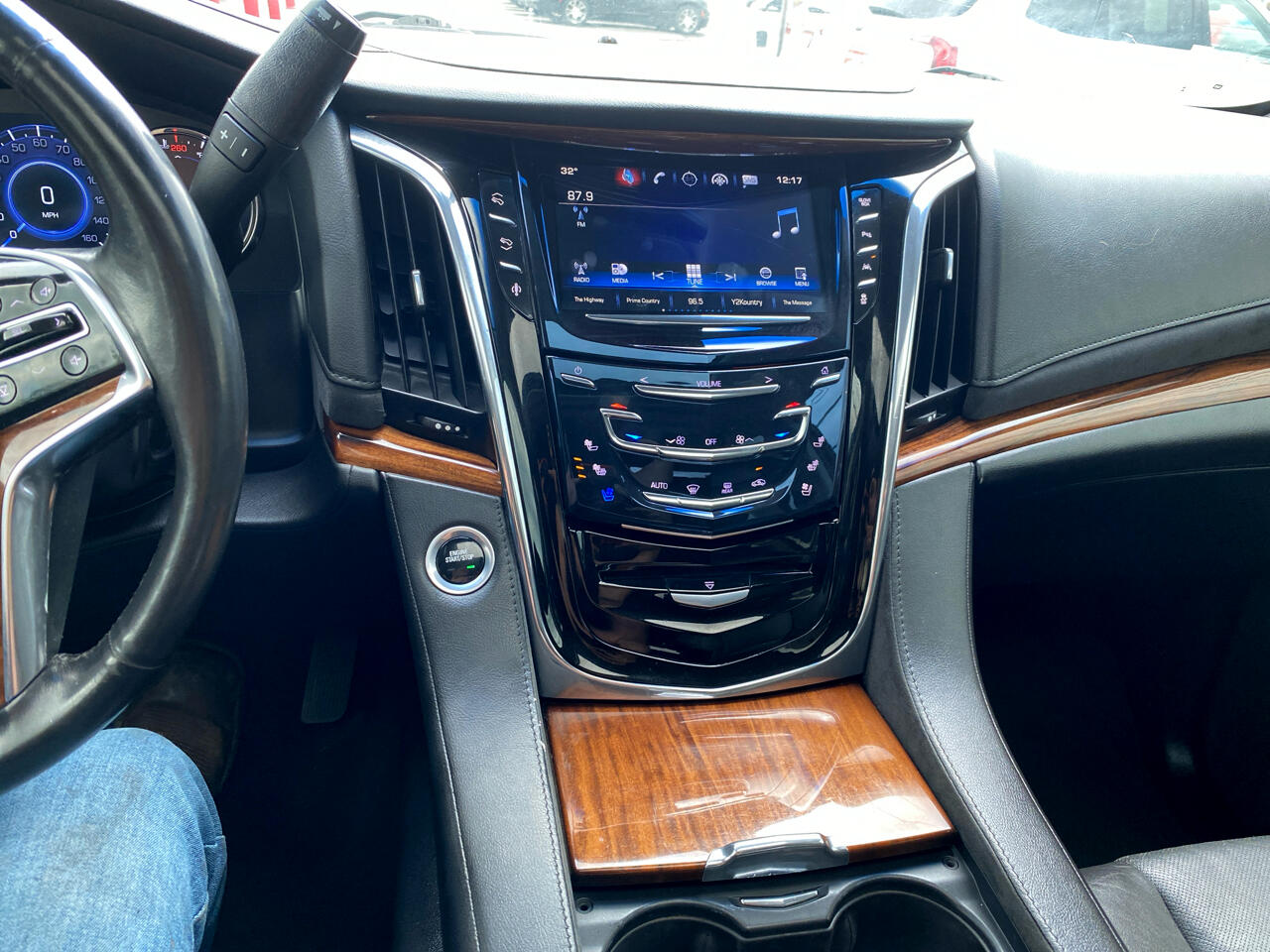 Jump into luxury and style with this Arctic Metallic 2016 Cadillac Escalade! Feel the power of the 6.2L V8 engine, capable of delivering 420 HP of pure excitement. Equipped with all the bells and whistles, this Escalade offers Magnetic Ride Control, automatic load leveling, and a high-capacity air cleaner for peak performance. The exterior features chrome accents, LED lighting, and a roof-mounted luggage rack for added convenience. Step inside to find a Bose Centerpoint Surround Sound system, heated steering wheel, and a 12" color reconfigurable gauge cluster with a Head-Up Display. Safety is a top priority with features like Surround Vision, Front and Rear Park Assist, Lane Change Alert, and Side Blind Zone Alert. With a carfax report available, you can drive off the lot with peace of mind. Don't miss out on the opportunity to own this magnificent Escalade that seamlessly combines power, luxury, and safety in one sleek package.