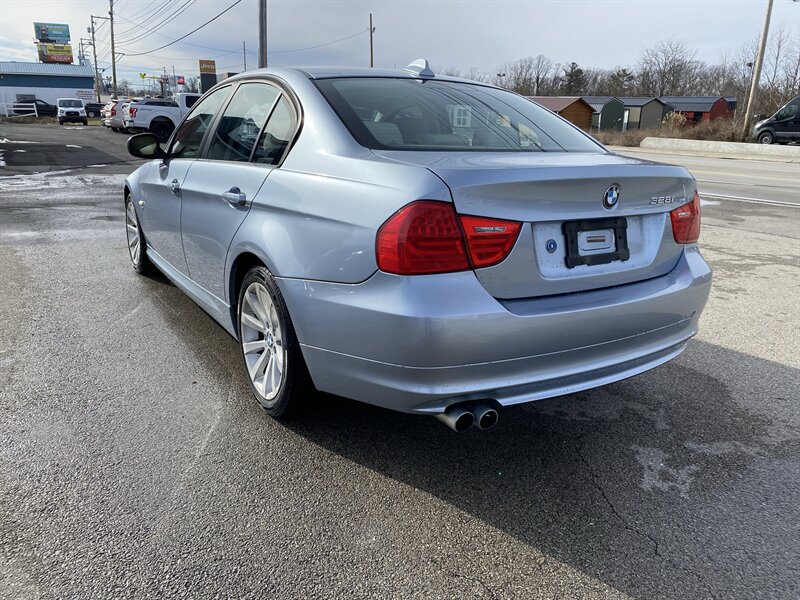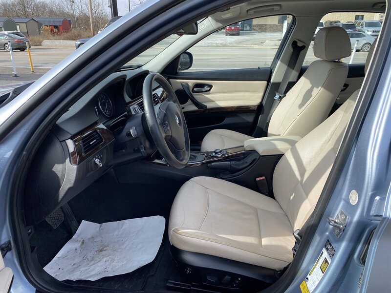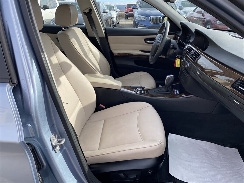 2011 BMW 328i xDrive in Deep Sea Blue Metallic with Beige Dakota Leather, powered by a 3.0L inline-6 producing 230 hp and 200 lb-ft. Factory equipment includes BMW xDrive all-wheel drive, full safety suite (ABS, traction and stability control, front/side/curtain airbags), automatic dual-zone climate control, power-adjustable front seats with lumbar, genuine Dakota leather upholstery, multi-function steering wheel, cruise control, power windows/locks/mirrors, alloy wheels, fog lamps and a BMW audio system with AM/FM/CD and auxiliary input. This vehicle has good mileage — under 122,000 miles (averaging less than 8,000 miles per year), EPA fuel economy of 17 MPG city / 25 MPG highway, is in excellent overall condition and has a clean CARFAX.