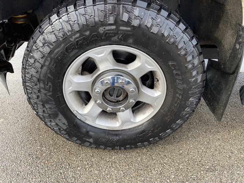 2012 Ford F-250 Super Duty XL FX4 in Oxford White with Steel Gray interior, powered by the factory 6.2L Flex Fuel V8 (385 hp / 405 lb-ft) mated to a 6-speed automatic. Factory equipment includes the FX4 off-road package (off-road tuned shocks, underbody skid protection and electronic locking rear differential), four-wheel drive, heavy-duty suspension and towing capability, plus XL’s work-oriented interior with durable seating and flooring, air conditioning, AM/FM/CD audio with auxiliary input, power windows and locks, cruise control and tilt steering. Excellent overall condition, clean CARFAX report, and well-maintained with under 126,000 miles (averaging less than 9,000 miles per year).