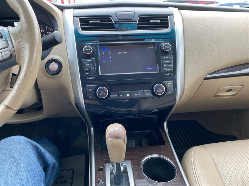 Discover the 2013 Nissan Altima 3.5 SV, a stylish sedan featuring a powerful 3.5L V6 engine that delivers 270 horsepower and 258 ft-lbs of torque. With a sleek black exterior and a comfortable tan interior, this vehicle combines performance with elegance. It boasts a range of factory features, including a power-adjustable driver's seat, dual-zone automatic climate control, and a premium audio system with Bluetooth connectivity for hands-free calling and streaming. The Altima also comes equipped with a rearview camera, push-button start, and advanced safety features such as traction control and multiple airbags. With just under 121,000 miles, averaging less than 10,000 miles per year, this sedan offers excellent fuel efficiency at 22 MPG in the city and 31 MPG on the highway. In excellent overall condition, it's a reliable choice for those seeking a blend of comfort and power.