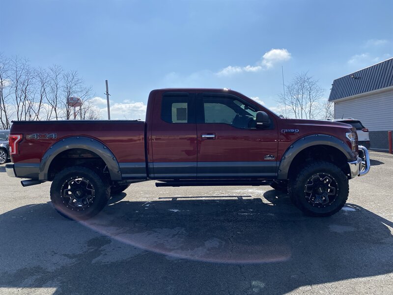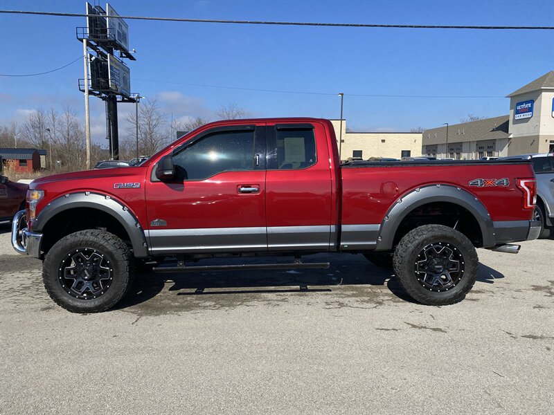2015 Ford F-150 XLT powered by the 5.0L Flex Fuel V8 (385 hp / 387 lb-ft). Finished in Burgundy with Gray premium leather seats, this truck is in excellent overall condition and has below 104,000 miles (averaging under 9,000 miles per year) with a clean CARFAX. Factory XLT equipment includes chrome-accent exterior trim, alloy wheels, power windows/locks/mirrors, remote keyless entry, cruise control, tilt/telescoping steering, steering-wheel audio controls, Ford SYNC with Bluetooth and USB connectivity, AM/FM audio, air conditioning, full instrumentation, and a comprehensive safety suite with ABS, stability control and multiple airbags.