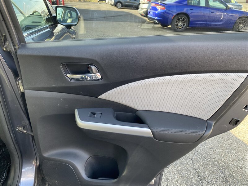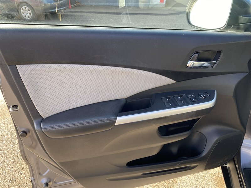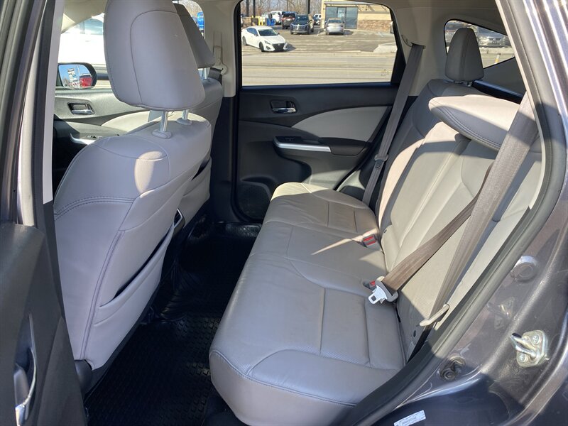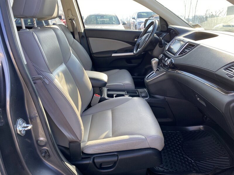 Introducing the 2015 Honda CR-V EX-L with Navigation, a versatile and efficient compact SUV. Powered by a 2.4L I4 engine, it delivers 185 horsepower and 181 lb-ft of torque, ensuring a smooth driving experience. The exterior is finished in a sleek Gray, complemented by a comfortable Gray interior.