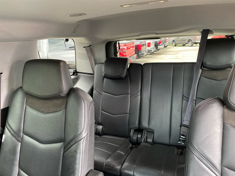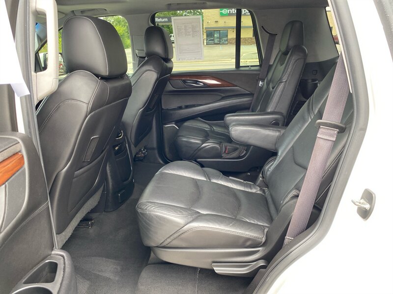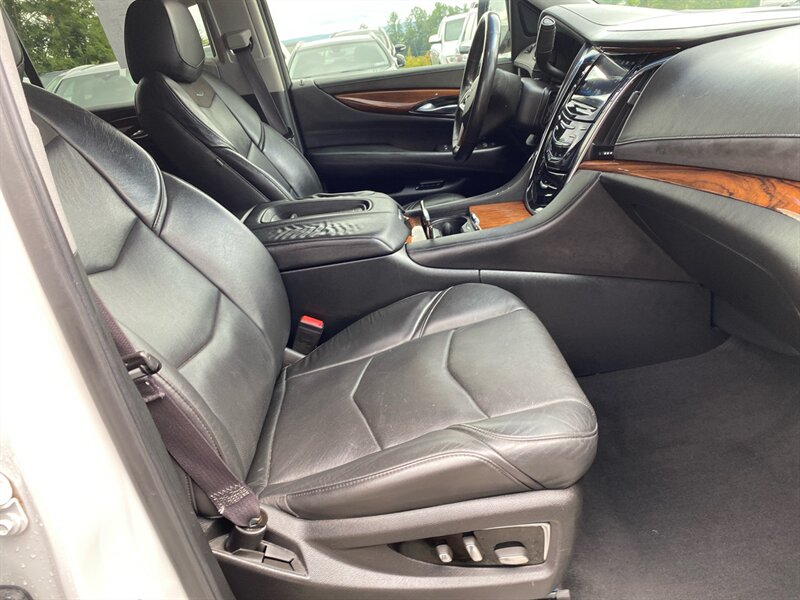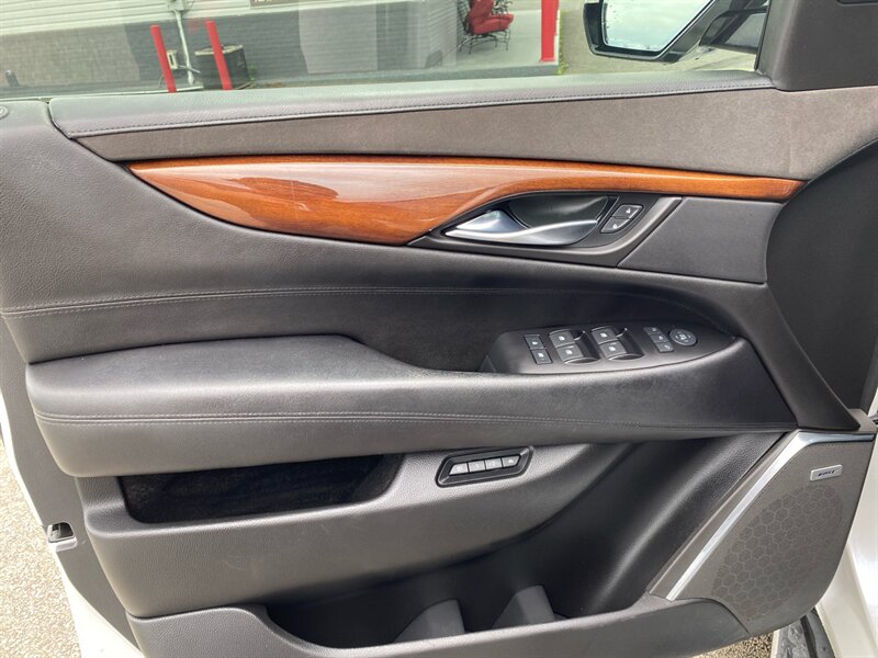 Standard factory features include a hands-free liftgate, adaptive cruise control, and a panoramic sunroof, enhancing convenience and comfort. The Escalade is also equipped with Cadillac User Experience (CUE), offering a user-friendly infotainment system with navigation, Bluetooth connectivity, and a premium audio system. Safety features such as forward collision alert, lane departure warning, and rear park assist further elevate the driving experience.