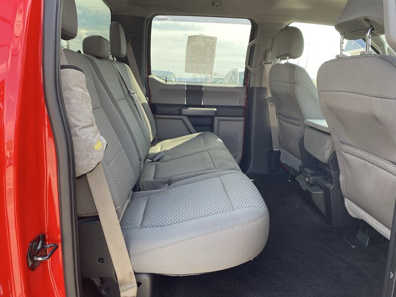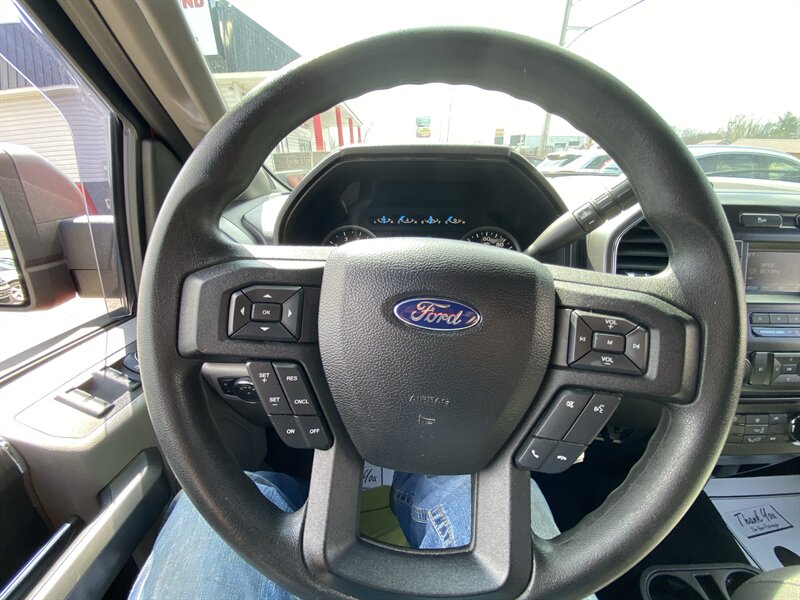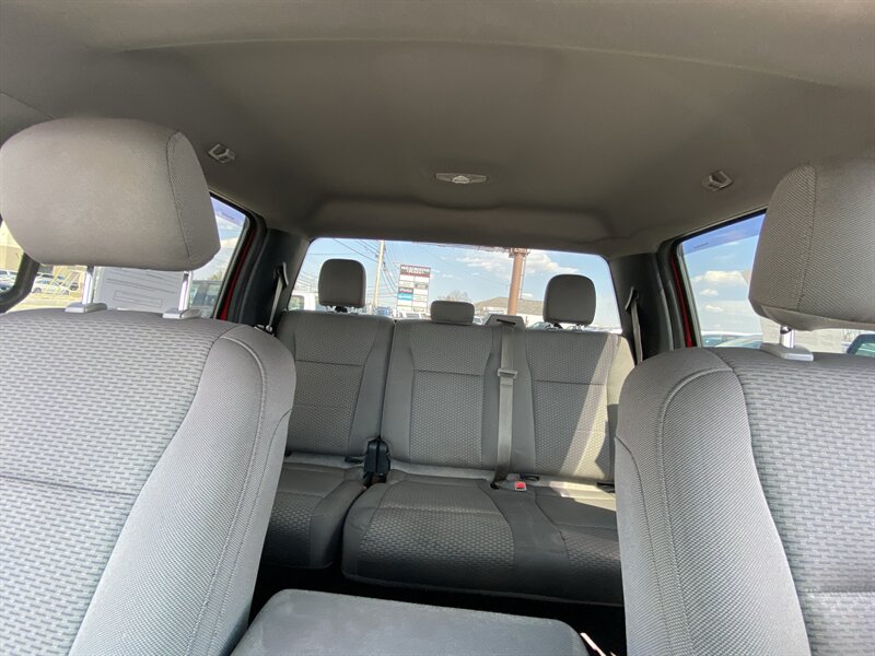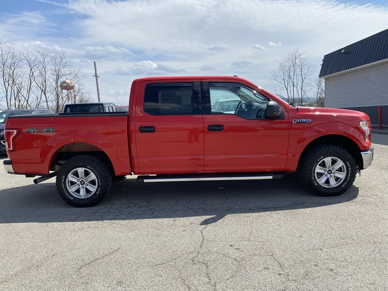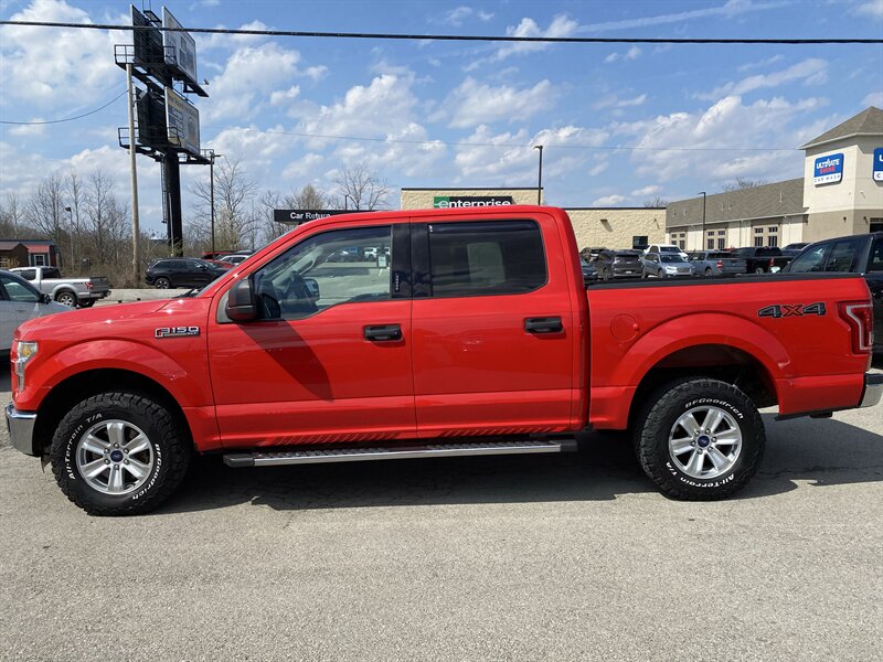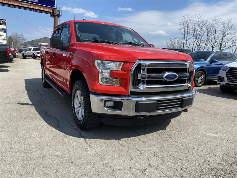 2016 Ford F-150 XLT with a 5.0L Flex Fuel V8 (385 hp, 387 lb-ft) paired with a 6-speed automatic transmission. Factory-equipped with power windows and door locks with remote keyless entry, cloth seating with center storage, air conditioning, cruise control, tilt-and-telescoping steering column, Ford SYNC audio with Bluetooth and USB connectivity, steering-wheel-mounted audio and phone controls, painted aluminum wheels and XLT chrome exterior accents. Standard safety features include 4-wheel ABS, electronic stability and traction control, multiple airbags and tire pressure monitoring. Exterior is Race Red with a Medium Earth Gray premium cloth interior. Excellent overall condition, clean CARFAX, and below 104,000 miles (averaging under 10,000 miles/year).