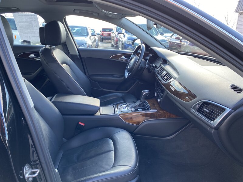 2017 Audi A6 2.0T quattro Premium Plus — powered by a 2.0L turbocharged I4 producing 252 hp and 273 lb-ft of torque, mated to a smooth automatic transmission and Audi’s quattro all-wheel-drive. Factory-standard Premium Plus equipment typically includes leather seating surfaces, heated and power-adjustable front seats with driver memory, a panoramic sunroof, keyless entry with push-button start, tri-zone automatic climate control, Audi MMI infotainment with central display, Bluetooth and USB connectivity, HD Radio, rearview camera with front/rear parking sensors, LED exterior lighting and alloy wheels, plus a full complement of airbags and electronic stability systems. Rated at 22 MPG city and 31 MPG highway, this vehicle is in excellent overall condition and comes with a clean CARFAX report.