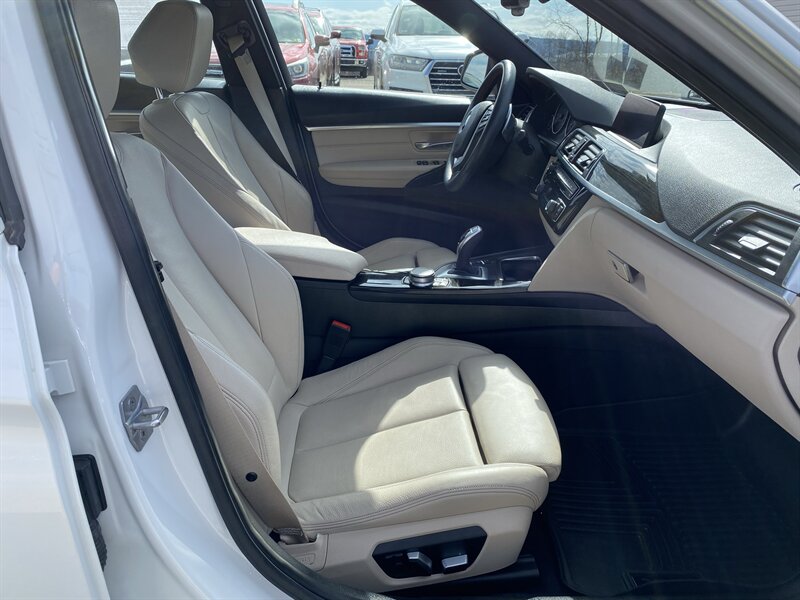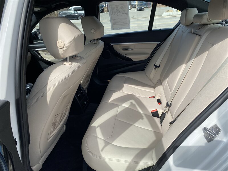 2017 BMW 330i xDrive in Alpine White with Venetian Beige/Black premium leather, powered by a 2.0L TwinPower Turbo I4 (248 hp, 258 lb-ft) mated to an 8-speed automatic transmission and BMW xDrive all-wheel drive. Factory equipment includes Driving Dynamics Control (Eco Pro/Comfort/Sport), multi-link suspension with Dynamic Stability Control, alloy wheels, automatic headlights with LED daytime running lights, dual-zone automatic climate control, power front sport seats with lumbar adjustment and premium leather upholstery, split-folding rear seats, leather-wrapped steering wheel, power windows/locks, iDrive infotainment with central display and rotary controller, Bluetooth/USB connectivity, cruise control, ABS, multiple airbags and tire pressure monitoring. This vehicle has below 93,000 miles (under 10,000 miles/year average), is in excellent overall condition, achieves an EPA rating of 23 MPG city / 33 MPG highway, and has a clean CARFAX.
