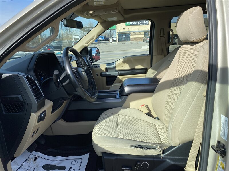 Introducing the 2018 Ford F-150 XLT, a powerful and versatile truck designed for both work and play. Under the hood, it features a robust EcoBoost 2.7L Twin Turbo V6 engine, delivering 325 horsepower and 400 ft-lbs of torque. The exterior is finished in a sleek tan color, complemented by a matching tan interior that offers comfort and style.