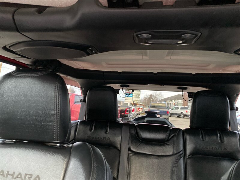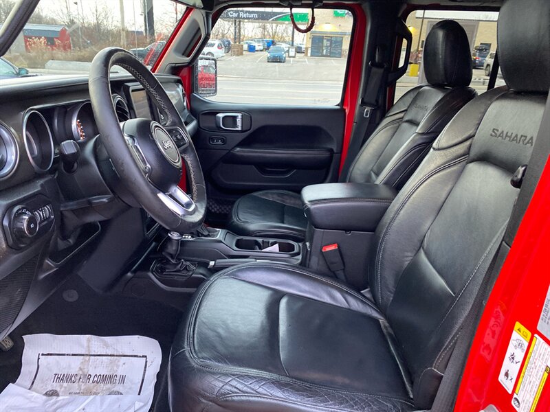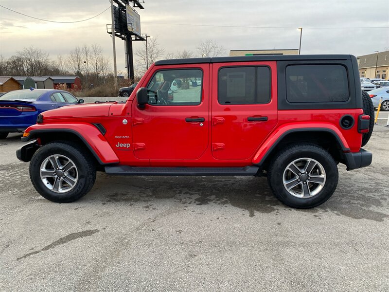 Experience the rugged elegance of the 2018 Jeep Wrangler Sahara, featuring a powerful 3.6L V6 engine that delivers robust performance on and off the road. This striking Red exterior is complemented by a sophisticated Black interior, showcasing the vehicle's attention to detail and comfort.