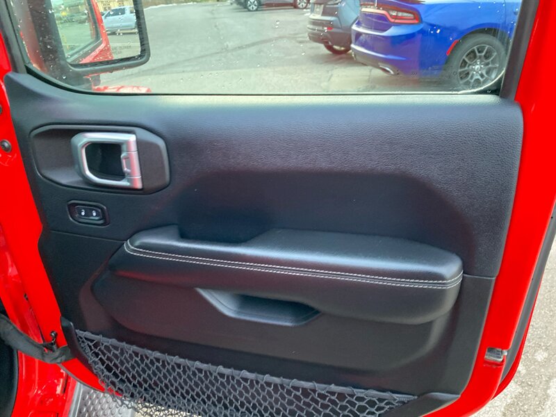 For entertainment, the AM/FM stereo with satellite radio capability and Bluetooth connectivity keeps you connected on the go. Additional amenities include power windows, power door locks, heated mirrors, cruise control, and fixed running boards for easy access. With a tow package and an anti-spin rear axle, this Wrangler is ready for all your hauling needs.