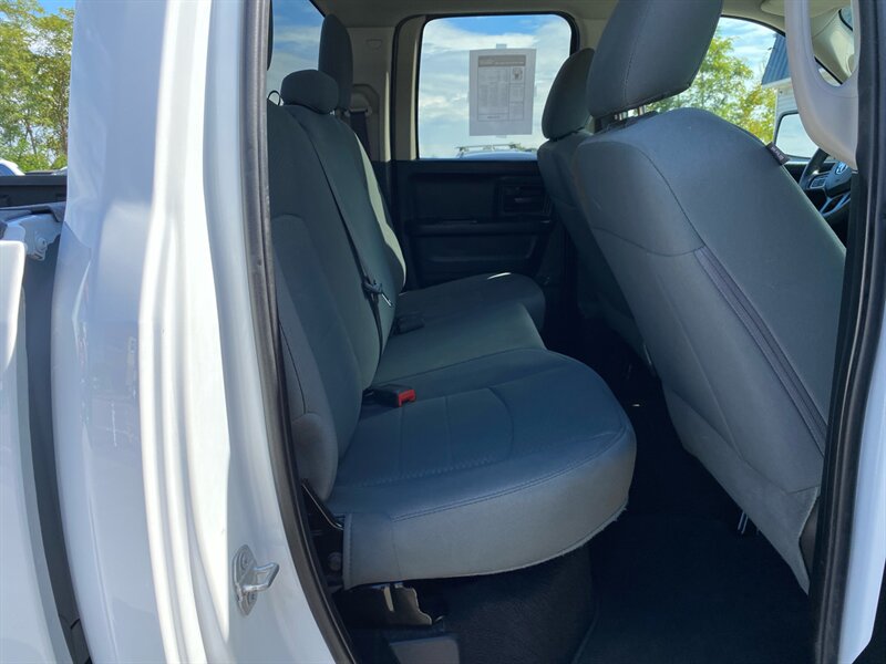 This model comes equipped with a range of factory default features, including a durable vinyl seat trim, a 5-inch touchscreen display, Bluetooth connectivity for hands-free communication, and a rearview camera for added safety when reversing. Additionally, it offers keyless entry, a locking tailgate, and a bed liner for enhanced utility. With a fuel economy of 15 MPG in the city and 21 MPG on the highway, this RAM 1500 balances power with efficiency. Overall, this vehicle is in excellent condition, ready to tackle any task with ease.