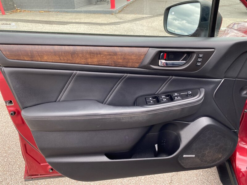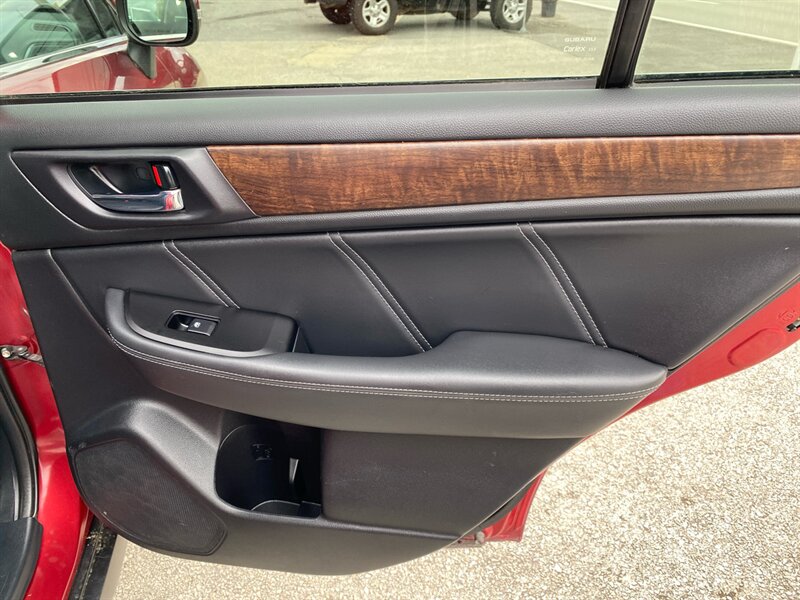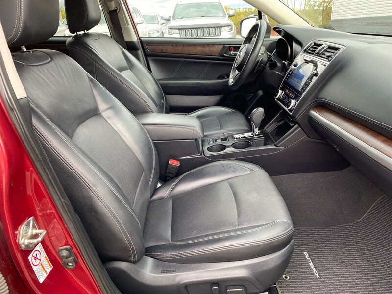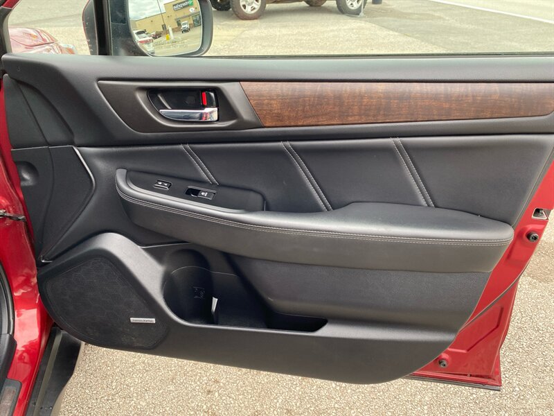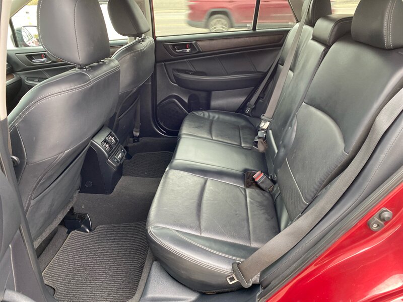 Introducing the 2018 Subaru Outback 3.6R Limited, a versatile and rugged SUV designed for both city driving and outdoor adventures. This model is powered by a robust 3.6L H6 engine, delivering 256 horsepower and 247 ft-lbs of torque, ensuring a powerful performance on any terrain. The eye-catching red exterior is complemented by a sleek black interior, creating a stylish yet functional environment.