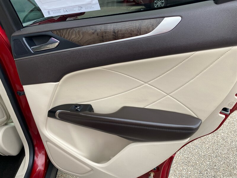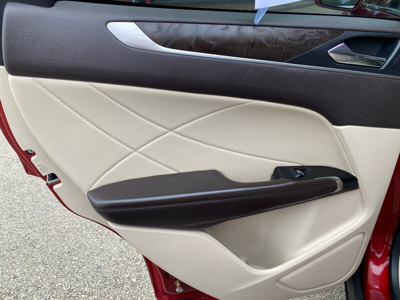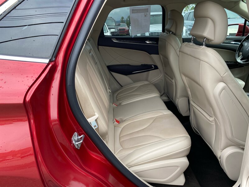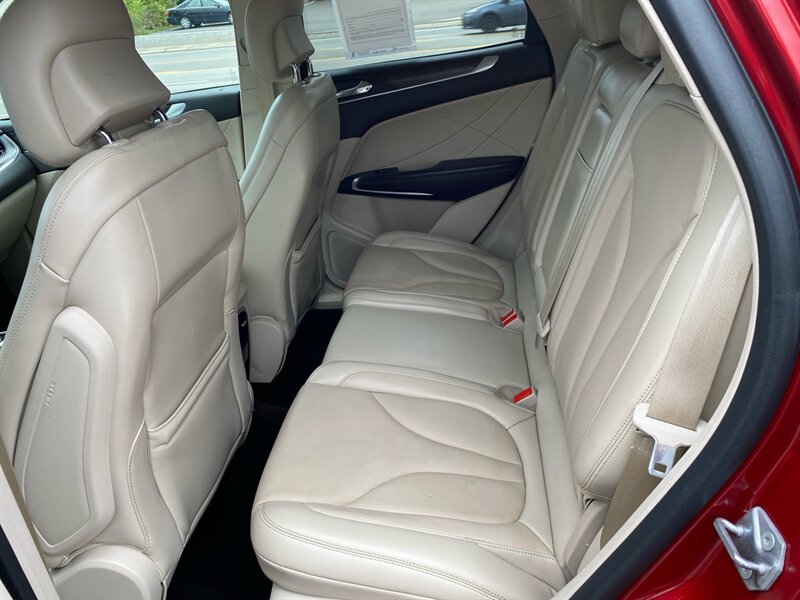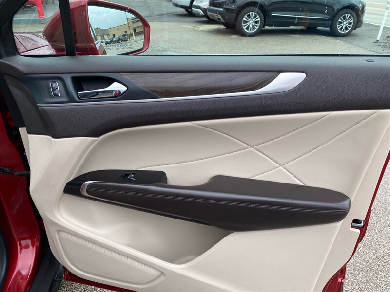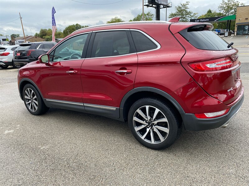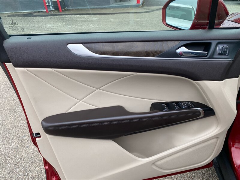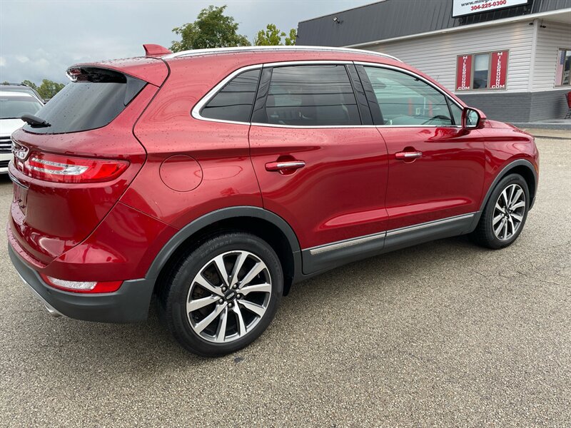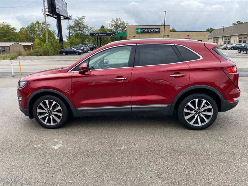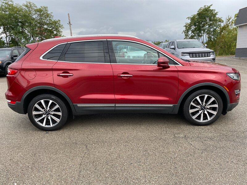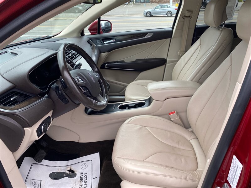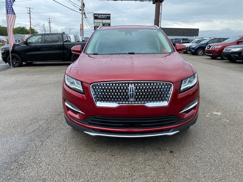 Introducing the 2019 Lincoln MKC Reserve, a luxury compact SUV that combines style and performance. Powered by an EcoBoost 2.0L Turbo I4 engine, this vehicle delivers 245 horsepower and 275 ft-lbs of torque, ensuring a responsive driving experience. The striking burgundy exterior is complemented by a sophisticated tan leather interior, offering both comfort and elegance.