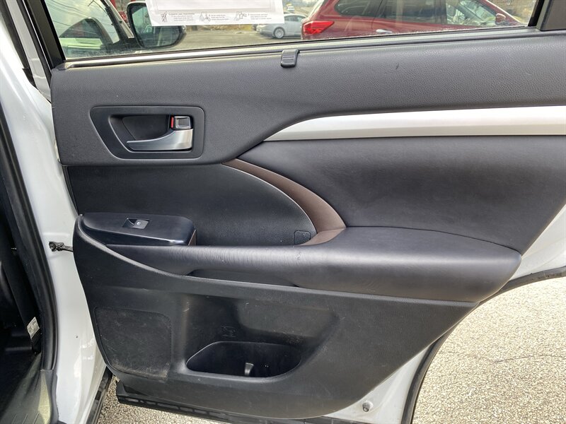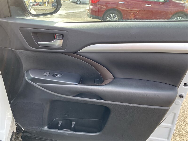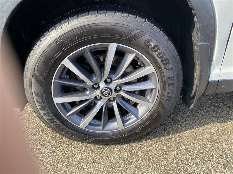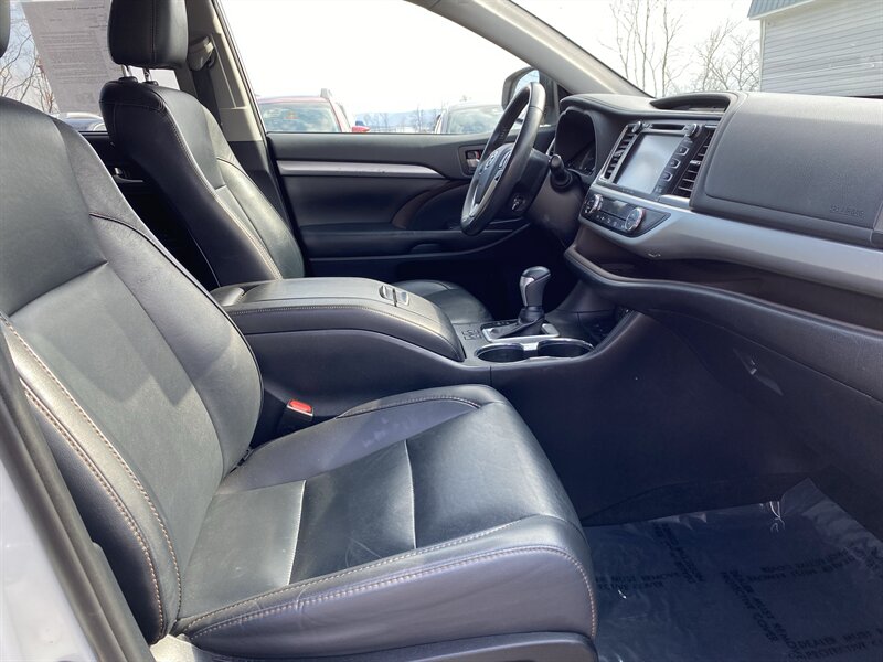 2019 Toyota Highlander XLE in Blizzard Pearl with Black premium leather interior, powered by a 3.5L V6 (295 hp, 263 lb-ft); rated 19 MPG city / 26 MPG highway and in excellent overall condition with a clean CARFAX. Factory equipment includes Toyota Safety Sense (pre-collision with pedestrian detection, lane departure alert with steering assist, adaptive cruise control, automatic high beams), blind-spot monitor with rear cross-traffic alert, keyless entry with push-button start, power liftgate and power moonroof, heated front seats and leather-trimmed seating, tri-zone automatic climate control, touchscreen infotainment with Bluetooth/USB, steering-wheel controls, alloy wheels, roof rails, and split-folding rear seats for flexible passenger/cargo arrangements.