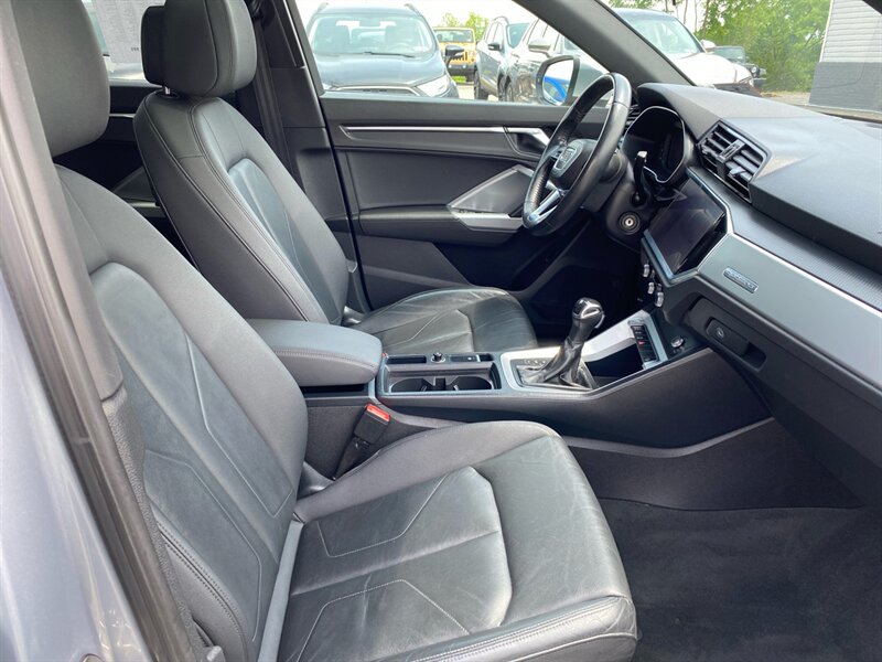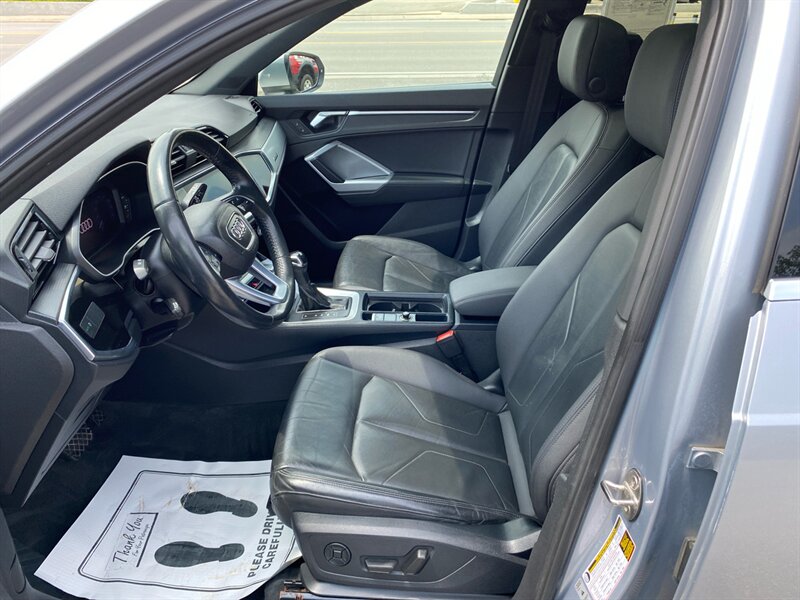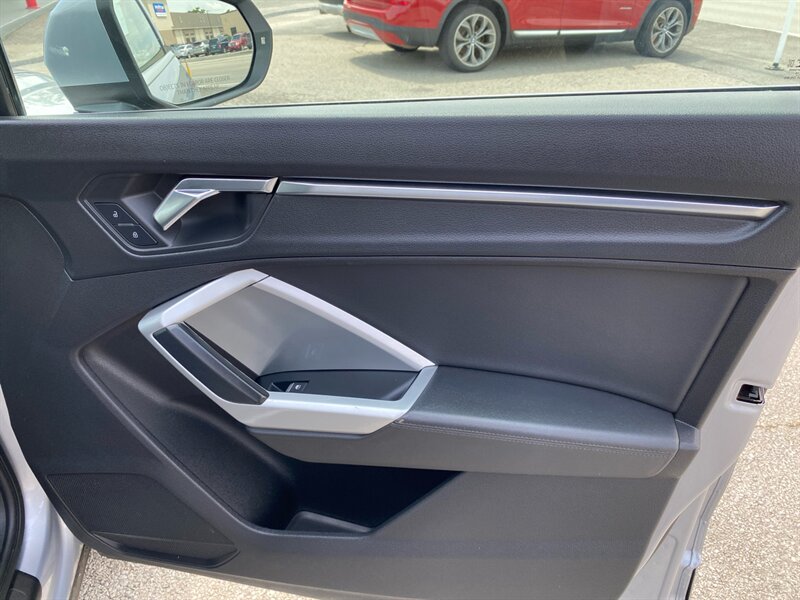 Factory default features include Audi's signature Quattro all-wheel drive system for enhanced traction and stability, a panoramic sunroof for an open and airy feel, and a premium sound system for an immersive audio experience. The vehicle is equipped with advanced safety features such as forward collision warning and automatic emergency braking, as well as convenience features like keyless entry and a power liftgate. With an impressive fuel economy of 19 MPG in the city and 27 MPG on the highway, this Q3 combines efficiency with luxury. This vehicle is in excellent overall condition, ready to deliver a premium driving experience.