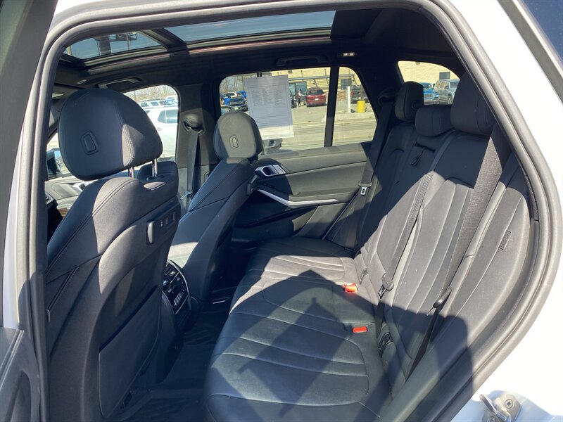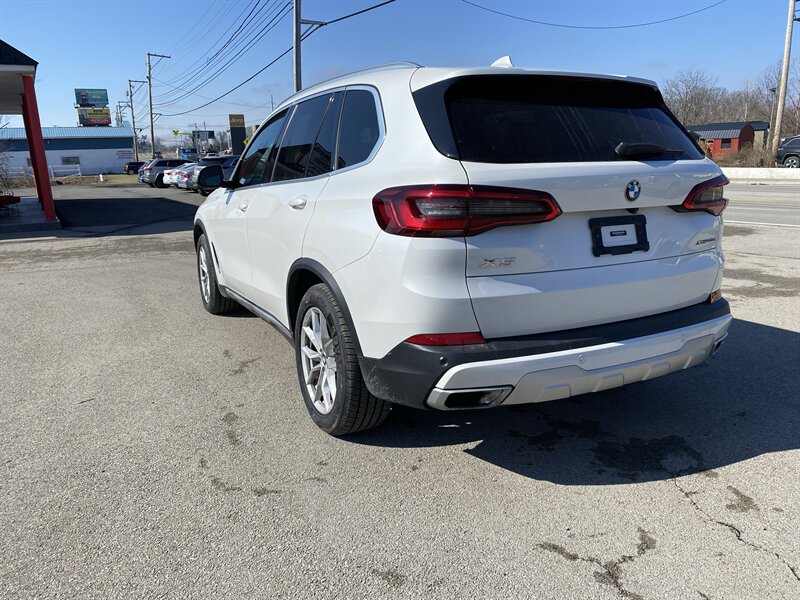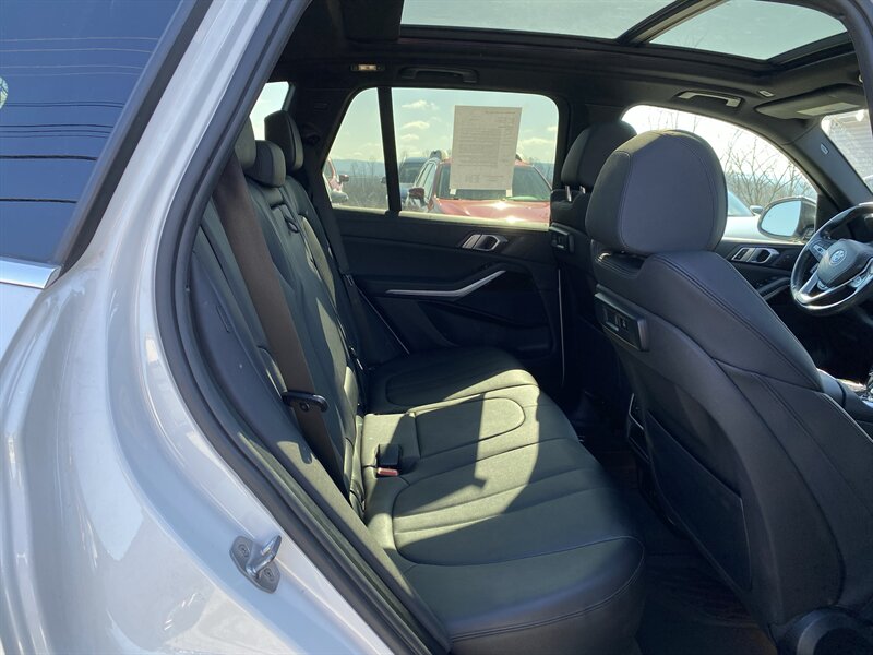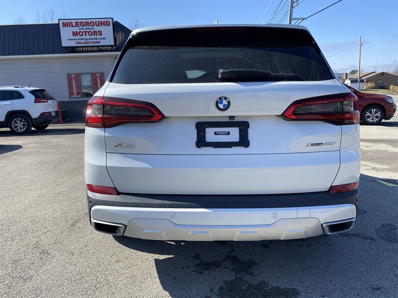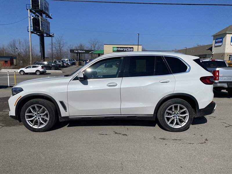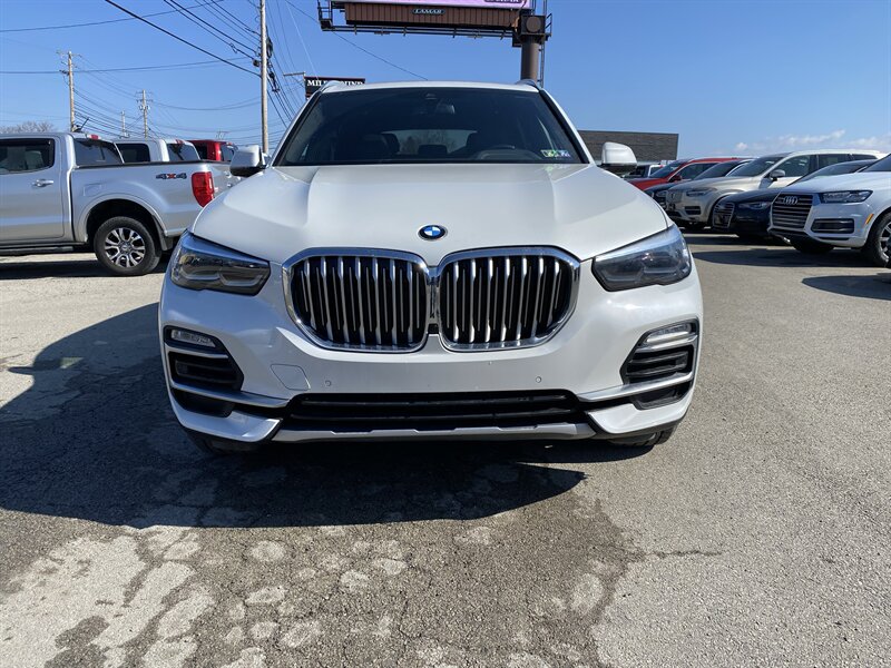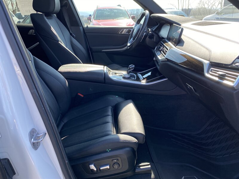 2020 BMW X5 xDrive40i in Mineral White Metallic with Black premium leather, excellent overall condition, clean CARFAX and one-owner history. Powered by a 3.0L turbocharged inline-6 producing 335 hp and 330 lb-ft, paired with BMW xDrive all-wheel drive and an 8-speed automatic (EPA 20 city / 26 highway). Factory equipment includes premium leather seating, power-adjustable front seats with memory, automatic climate control, and a power liftgate. The BMW iDrive infotainment system offers navigation, Bluetooth and USB connectivity, and steering-wheel audio controls. Standard convenience and safety features include a rearview camera, front/rear parking sensors, LED headlights, keyless entry with push-button start, multiple airbags, ABS and stability/traction control.